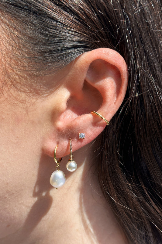 ATHENA PEARL HOOP EARRING STACK SET GOLD